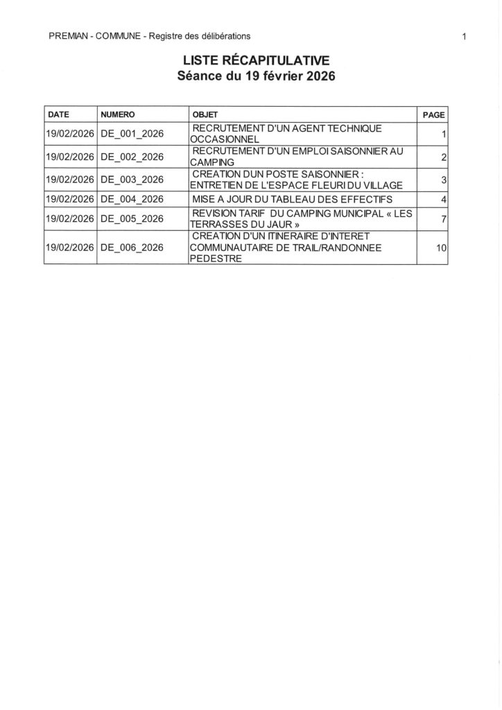 Procès-Verbal du Conseil Municipal du jeudi 19 février 2026 23 février 202623 février 2026 premian PV CM du 19 02 26 3Télécharger