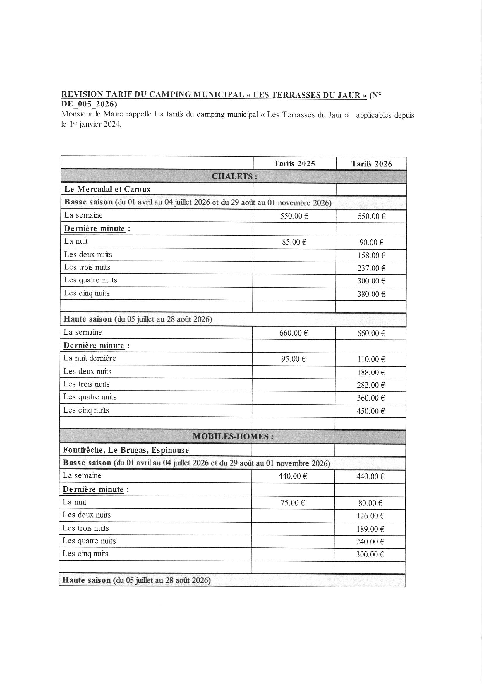 Tarifs